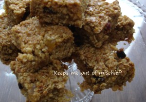 This week I’m making apple, raisin and cinnamon flapjack, adapted (of course!) from a recipe on the BBC website – I’m waiting for it to cool down as I type this and it smells divine!