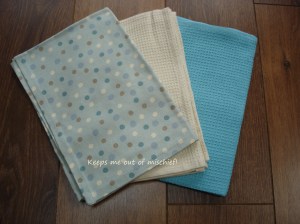 A couple of days after I got home my sister sent me a card to thank me for babysitting and my nephew clever little thing that he is sent me some Dunelm vouchers for being such a pain! Yesterday I went in for a wander; they have lots of curtain and upholstery fabrics, but not many lightweight cottons that I like to use, but I was inspired when I saw this tea-towel bundle for £2.99 – projects started jumping into my head!