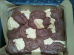 Add the cocoa and milk into the remaining mixture, making sure they are well mixed. Spoon the cocoa mixture into the spaces in the baking tin. Use a skewer to gently mix the two colours, don’t do this too much!