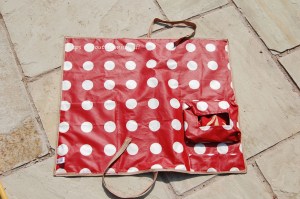 This was my first attempt at a couple of things – I’d never worked with oilcloth before unless you count throwing it across the dining room table to protect it from the nephews and I’d been fairly scared of bias binding before I started this project!