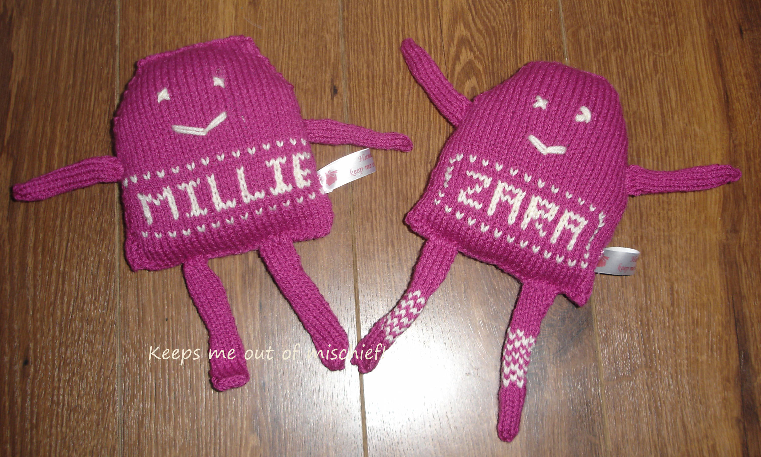 As I said yesterday, all my friends seem to be having babies; two of them have even reached the grand old age of one! I can’t believe it’s a year since two of my work colleagues went off on maternity leave and had their babies a day apart! I’ve already posted the instructions to make these little monsters, this time they’re even more girly – pink all the way!