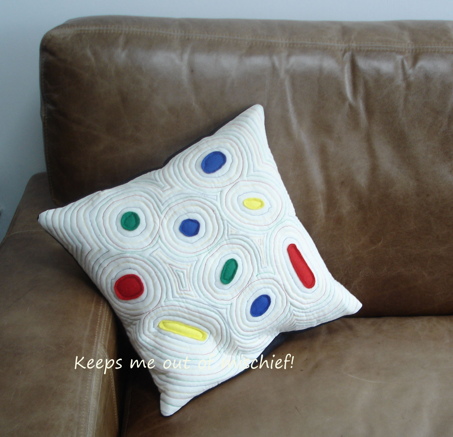 When you look at a map there are lines to show the contours of the ground; they show where hills are as they show increasing heights above sea level. The gradient lines are drawn for every 10m increase in height so the closer together the lines, the steeper the gradient. I was inspired to make this quilted cushion cover from the images on the maps. I think I’ll be able to use it in my classroom as a teaching aid when we study mountains later in the term 🙂