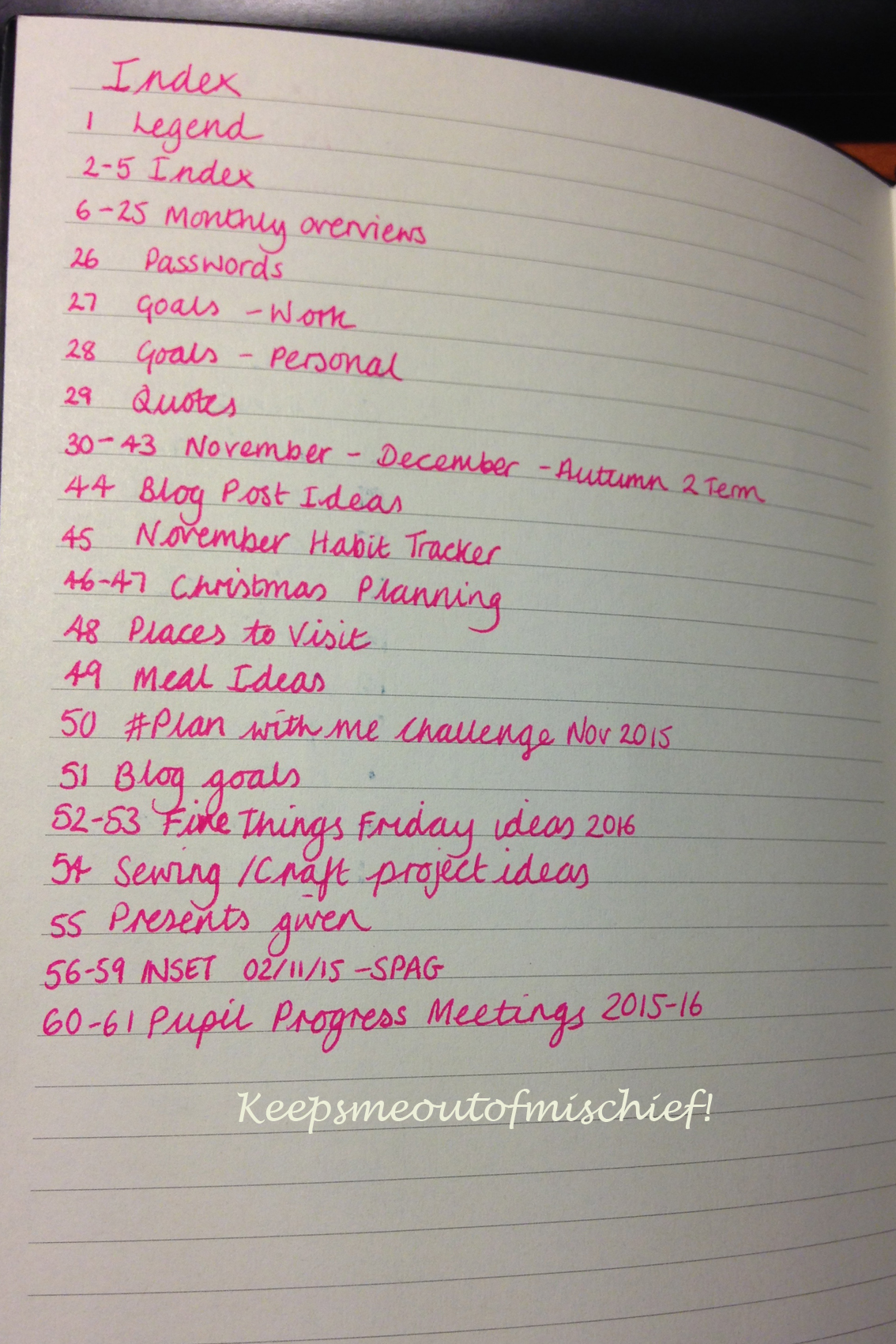 I decided to participate in the #planwithmechallenge for Nov2015 hosted by @prettyprintsandpaper and @tinyrayofsunshine on Instagram. This wasn’t a social media platform that I was familiar with, so it’s been an adventure. I initially thought that it would be a great way to see how others use their bullet journals and perhaps gain some ideas for mine. As it’s progressed, I’ve realised that it’s making me review how I use mine far more than I thought it would. I’ve already identified collections that I think need to be kept in a separate book so that I don’t have to write them all our again when I change to a new journal when this one runs out of space.