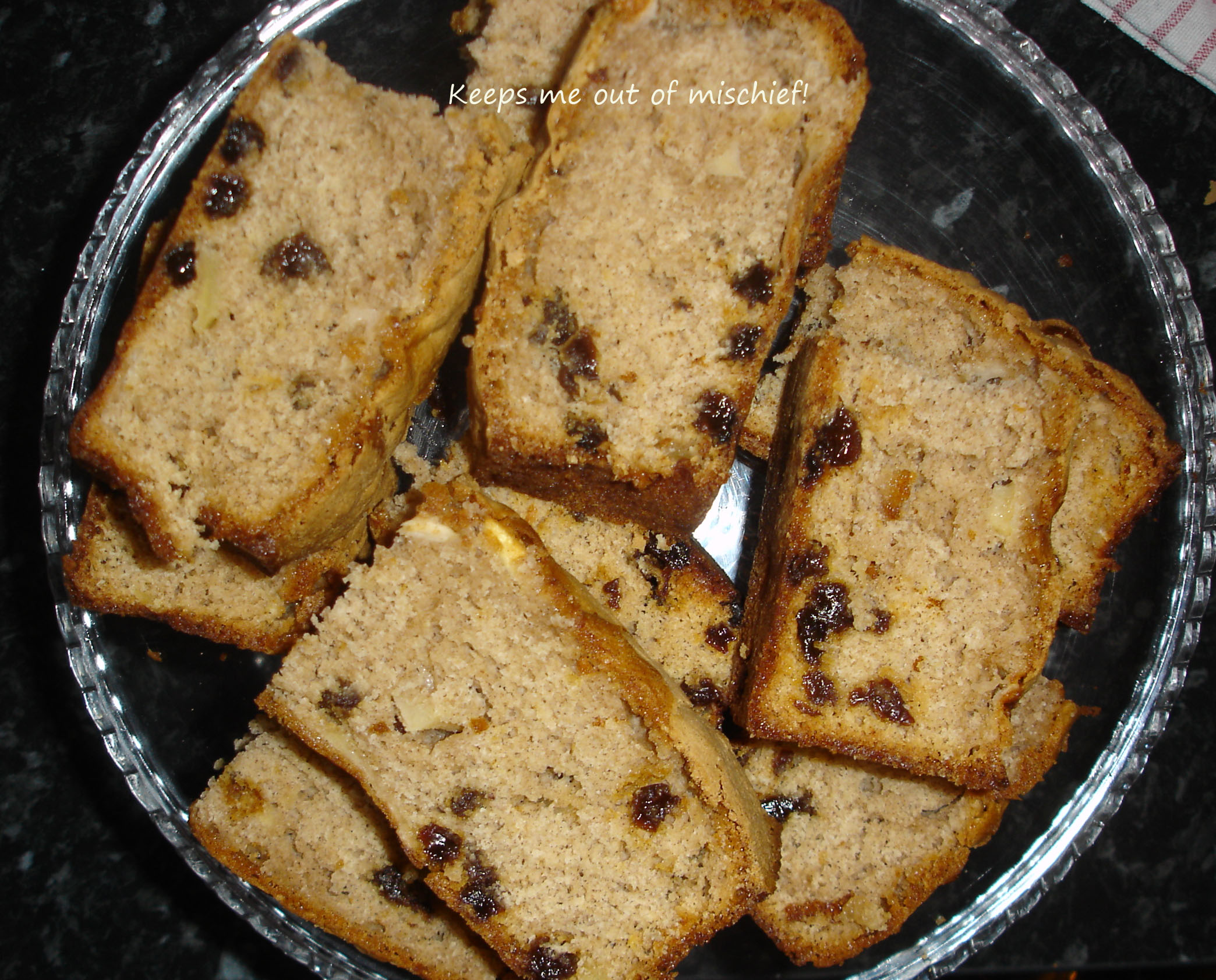 To the remaining portion I have added all kinds of goodies; cinnamon, raisins, grated apple, flour, eggs, and sugar. Herman Mark 2 then sat in the oven for about 45 minutes and tasted delicious – he certainly smells much better now!