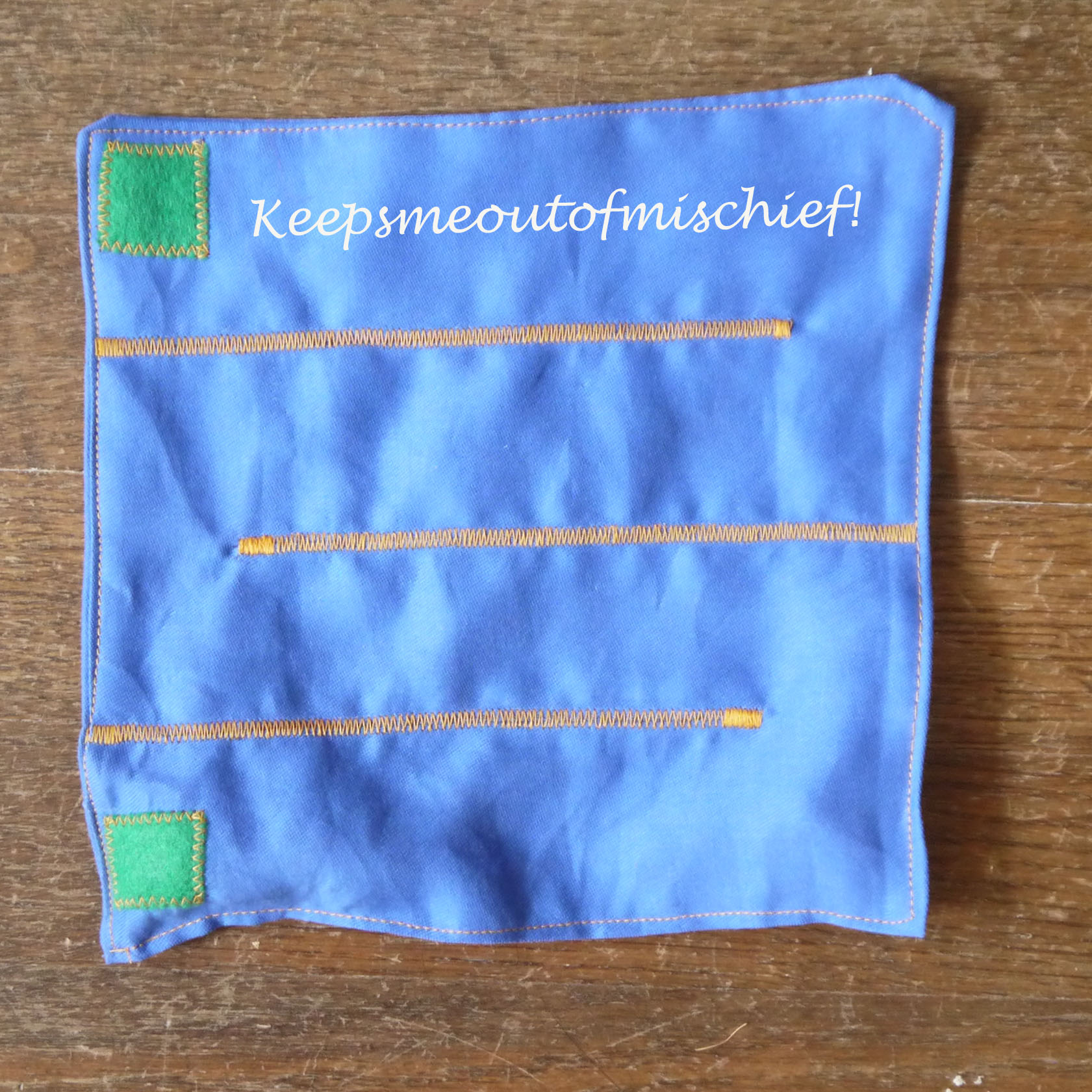 This was a quick craft that I did having pinned the idea on my SEN Pinterest board. I’ve been looking for a set of games to rotate around a group of children so that they can practise their fine motor skills. This game requires them to move three marbles through fabric channels from one green square to another.