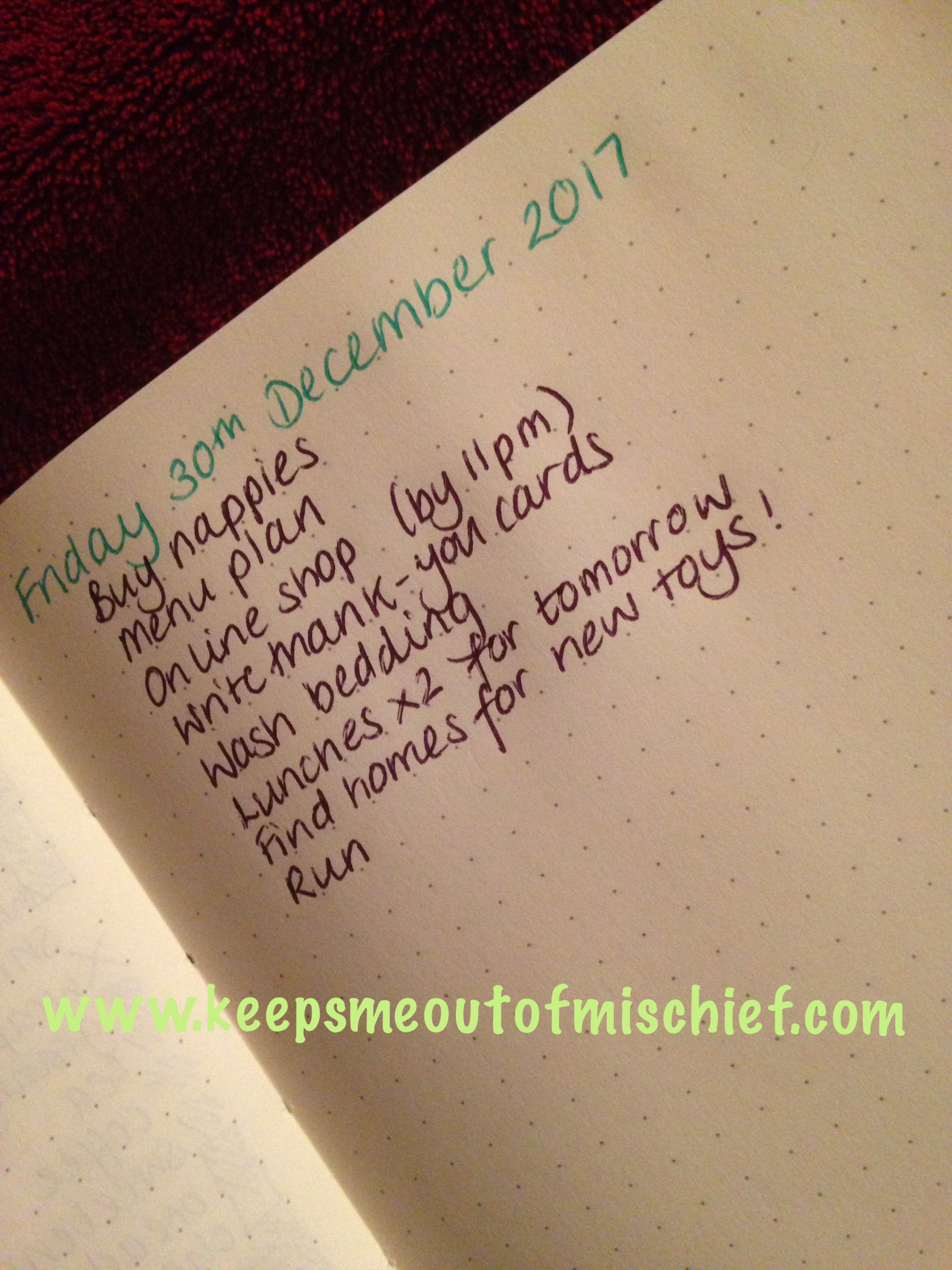 3. Add one or two ‘would be great if I had time to do these too’ type tasks. The thank-you cards and washing the bedding on my list definitely came under this category.