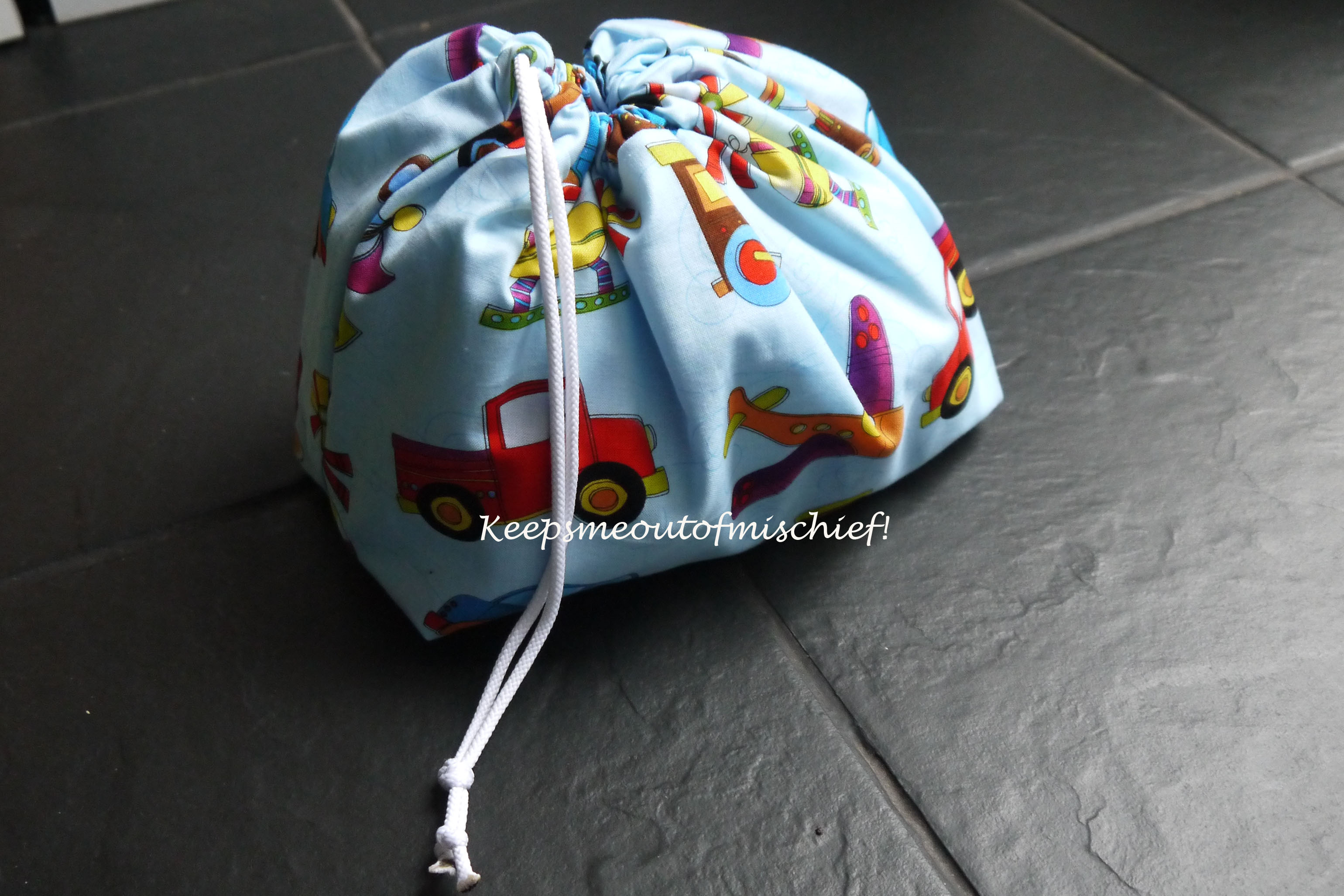 I had been packing his lunch in a lovely pink lunch bag which was far more appropriate for me than him and meant that I’ve taken his lunch by mistake at least once since I went back to work. I saw this lovely fabric in a new shop I’ve discovered, Quiltessential in Cromford, Derbyshire and was inspired to make him a drawstring lunch bag which is lined with PVC fabric so that it contains leaking drinks. There were so many lovely fabrics in there that I had to tear myself away before I spent too much – no matter, it’s not too far away, I can imagine we’ll be back fairly soon!